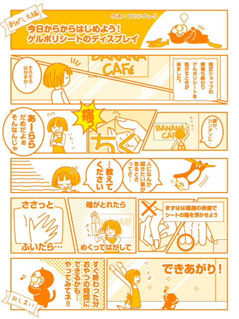 ゲルポリは貼り直し可能な素材だから、安心して作業ができます。普通のシールに比べ取り付けが簡単。"