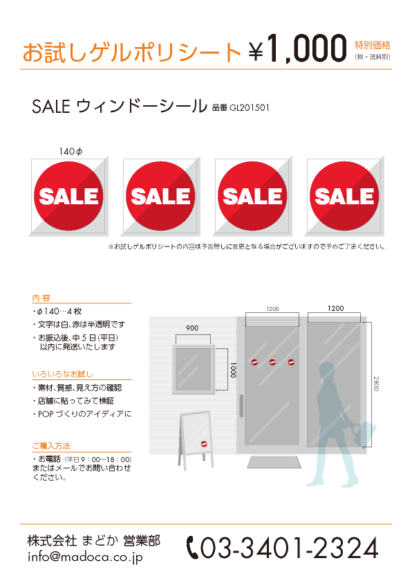 超透明素材なのでウィンドーに貼ってもガラスとの差が出にくく、キレイなディスプレイを作れます