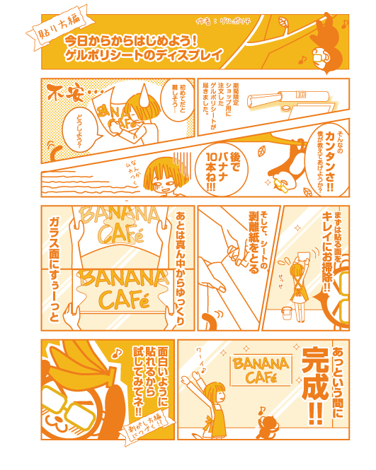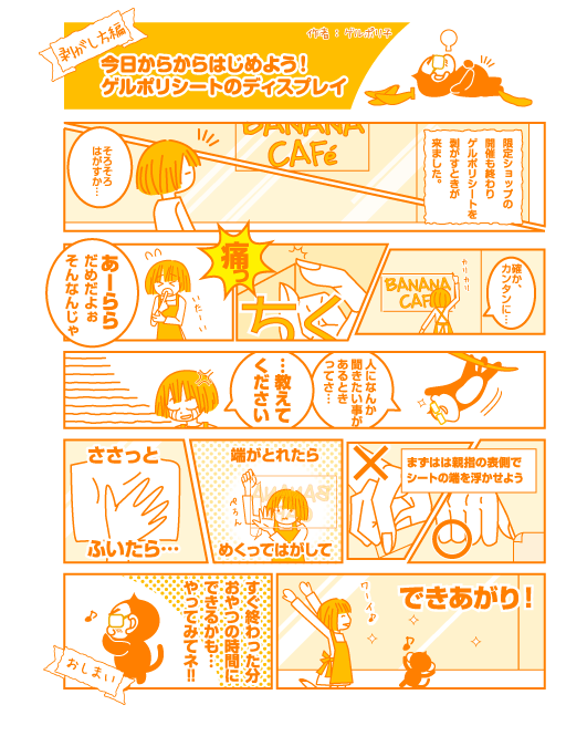貼り直しできるからスタッフや店員さんで安心して装飾できます。施工発注なしでコストダウン!
